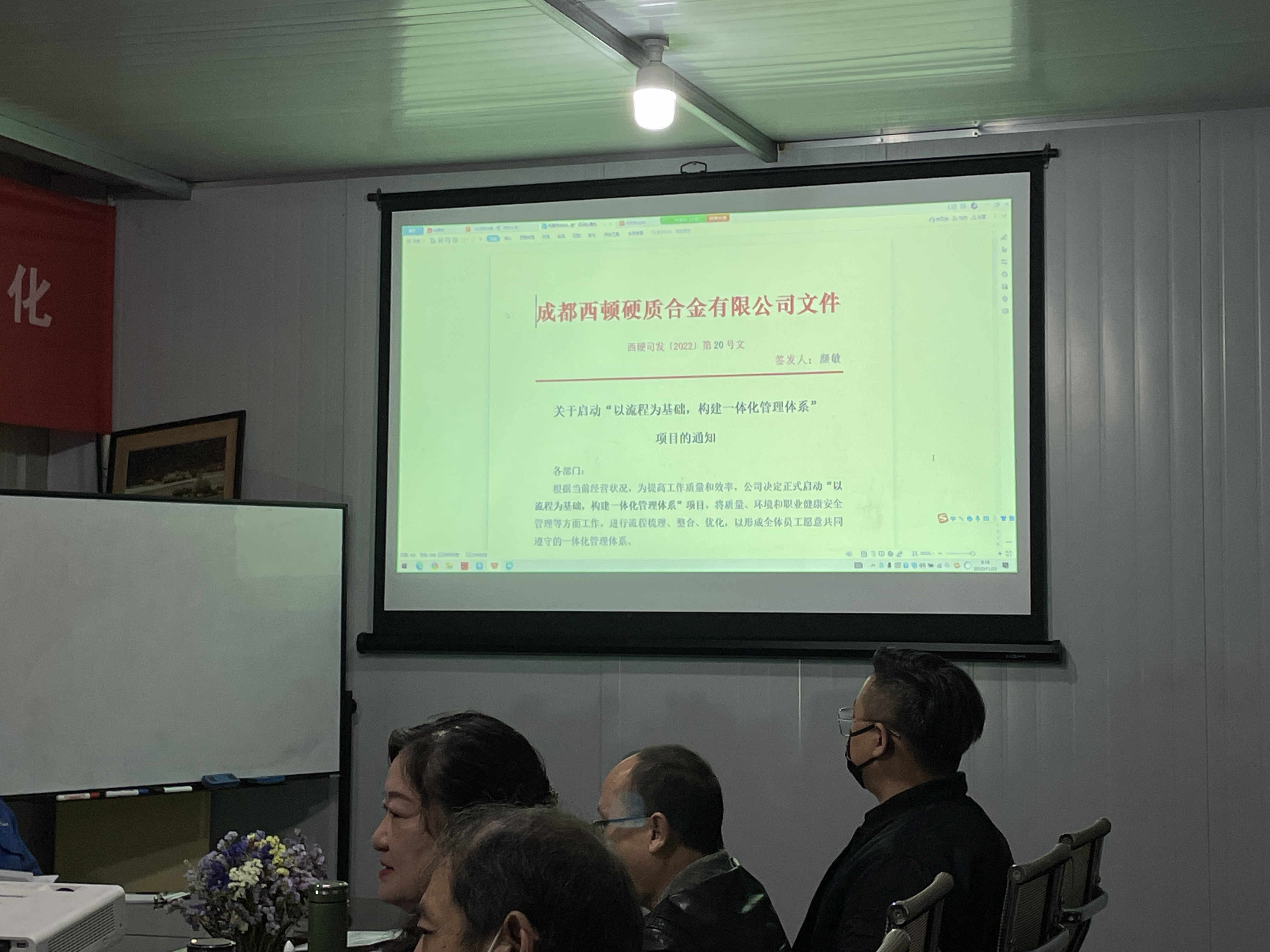 會(huì )議伊始,石華敏作為主講人向大家介紹四川質(zhì)庫德企業(yè)管理咨詢(xún)有限公司團隊成員;總經(jīng)理顏敏在會(huì )議上宣讀西硬司發(fā)〔2022〕第20號文,宣布項目正式啟動(dòng),對相關(guān)事務(wù)做出了明確分工。緊接著(zhù)石華敏老師作了項目背景介紹,針對公司目前在管理方面所面臨的各種挑戰做了分析,闡述公司在當前的形勢下為什么一定要構建一體化管理體系。